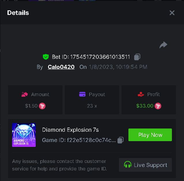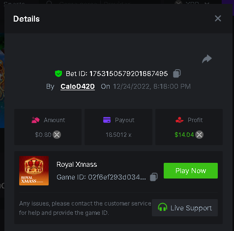 Calo0420 replied to BCGame_Maxim's topic in VIP Challenges