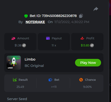 1. don't know how i can get the url for these bets but they are in my transaction history. https://hash.game/sd/?sd=10Q525VMSYVSWJ