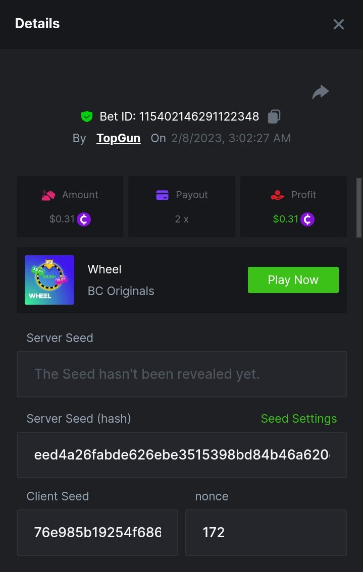 3. 9x, 15.5x https://bc.game/#/sd/11ELP47T3W61W3 https://bc.game/#/sd/11EITU79AAS3TZ