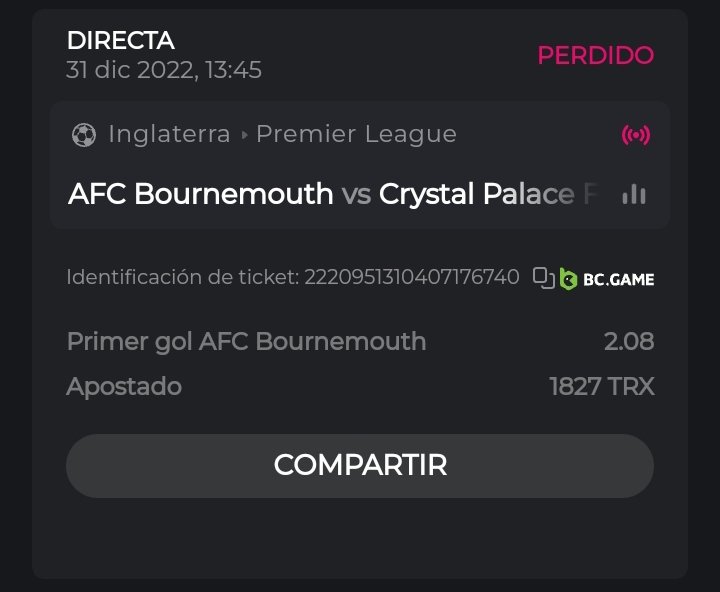 1. https://bc.game/es/sports?bt-path=%2F%3FbtBookingCode%3D4E569D0 Identificación de ticket: 2220951310407176740