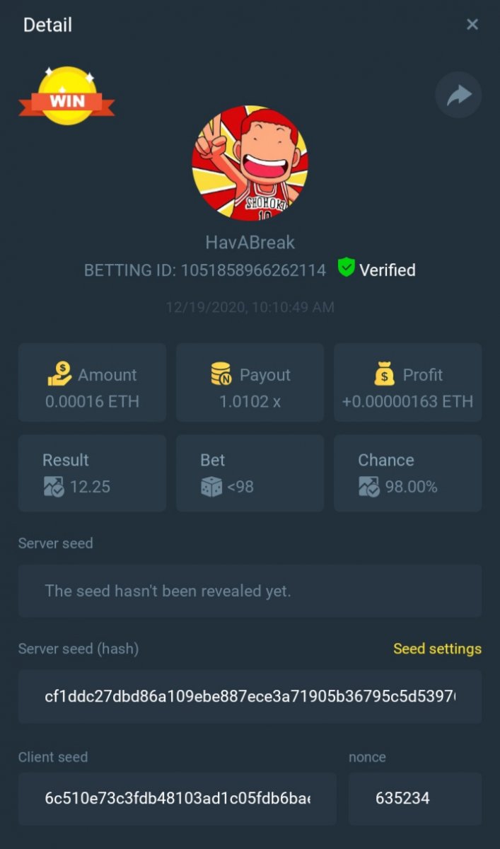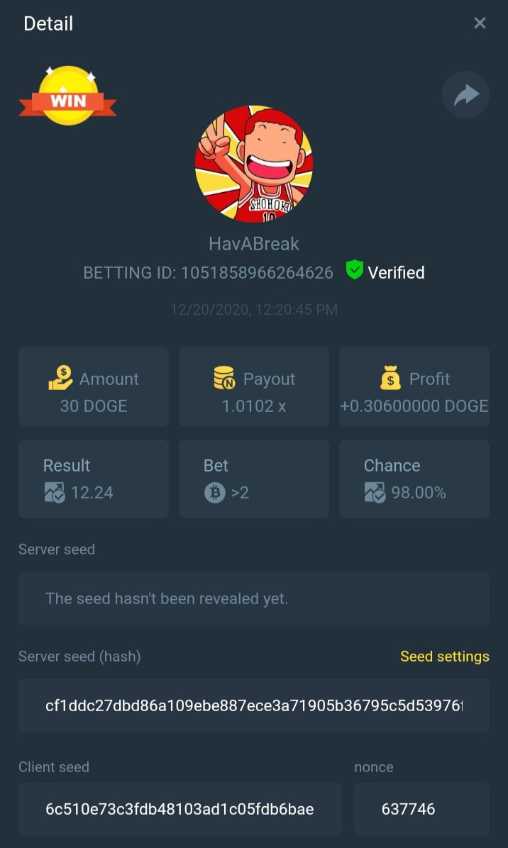 3. Bet ID's: 1051858966262114; 1051858966254714; 1051858966258621; 1051858966261294; 1051858966261786; 1051858966262191; 1051858966264319; 1051858966264626; BC.Game Username: HavABreak
