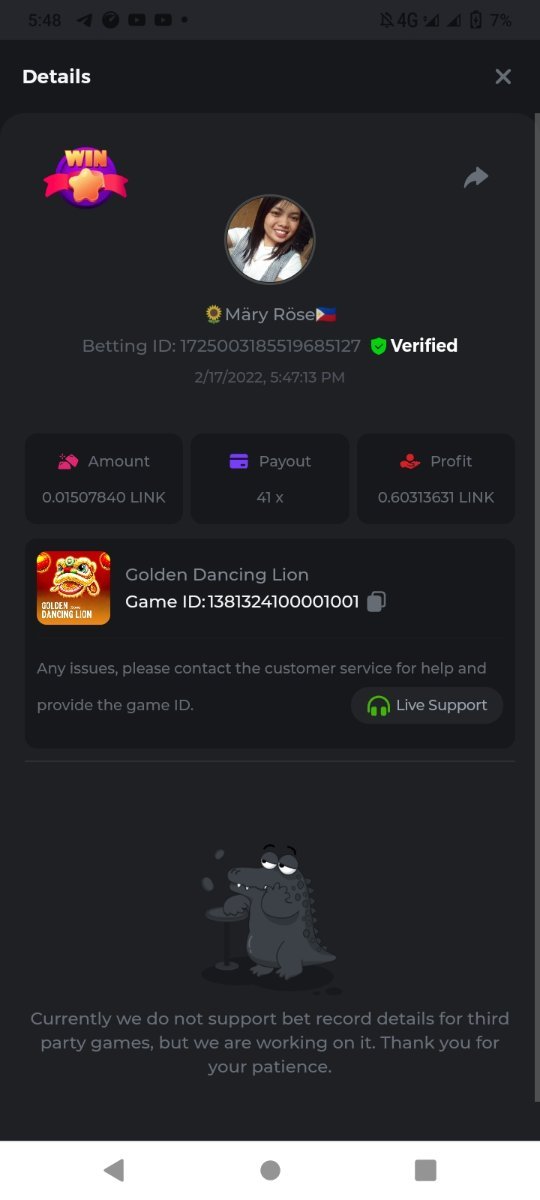 Hit the gold Betting ID: 1725004115950224512 Golden dancing lion Betting ID: 1725003185519685127 Tiger jungle Betting ID: 1725004843980165760 Solar queen Betting ID: 1725007278543917063