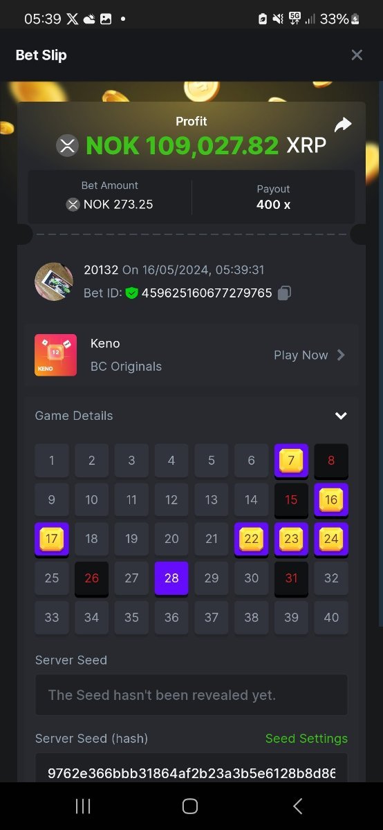 20132 replied to BCGame_Maxim's topic in VIP Challenges