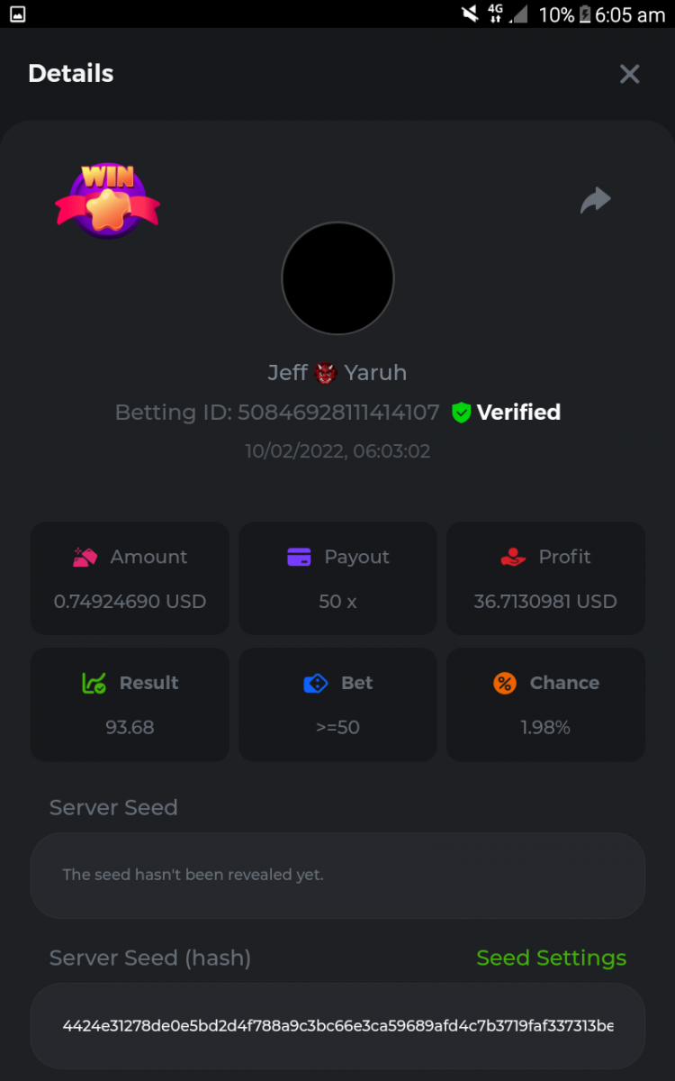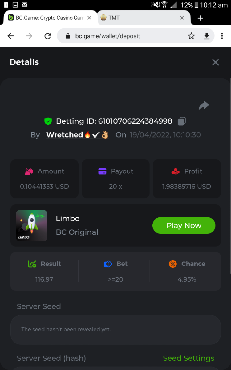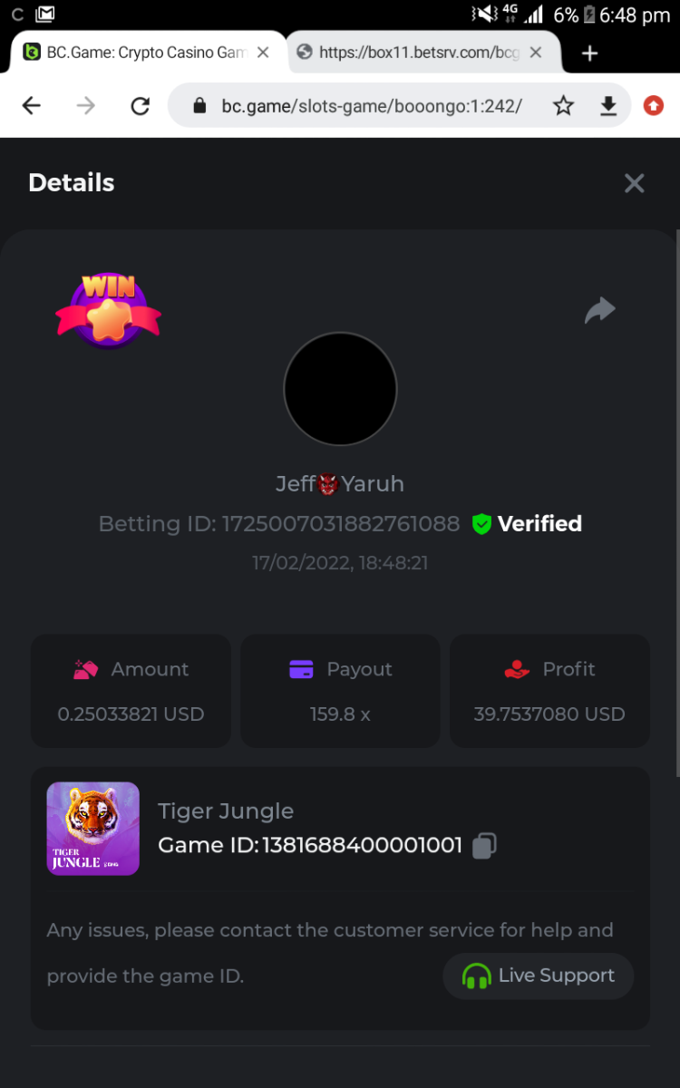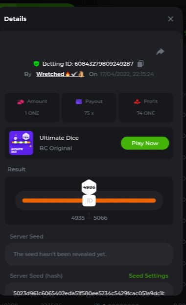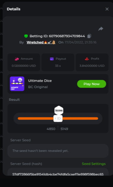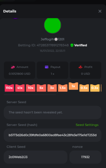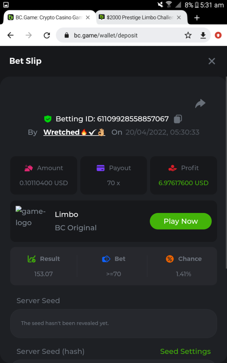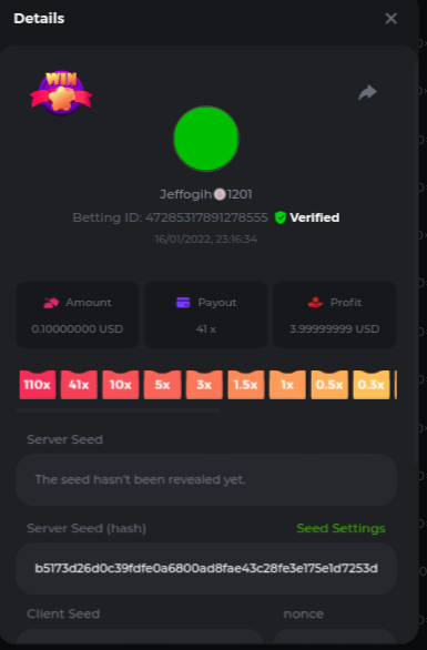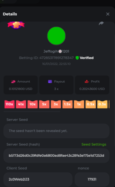 Betting ID: 50846928111414107 Limbo 50x Betting ID: 51443872730972376 Limbo 250x Betting ID: 720497883 Crash 50.01x