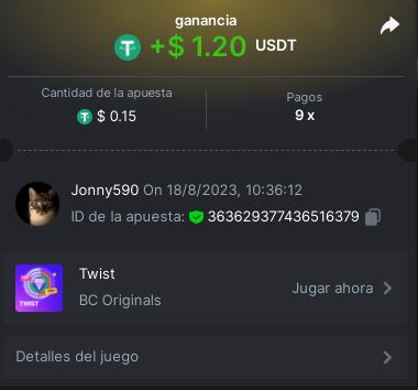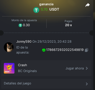 4. https://bc.game/#/sd/11INTM34DYRMDJ I bet 0.2 USDT, the page says it as 0.19