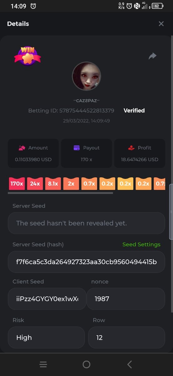 1. Bet ID: 63287060366112779 Bet link: https://bc.game/sd/?sd=10L5IC2S3BP8GJ