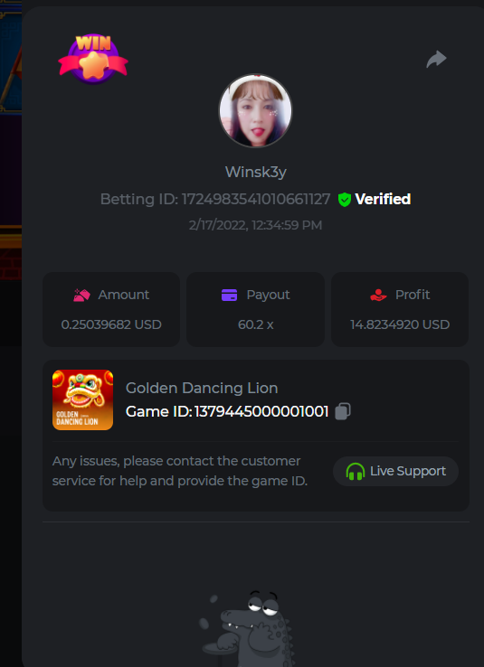 GOLDEN DANCING LION 1724983541010661127 HIT THE GOLD 1724983967115797767 TIGER JUNGLE 1724984908296827399 SOLAR QUEEN 1725532513044858496