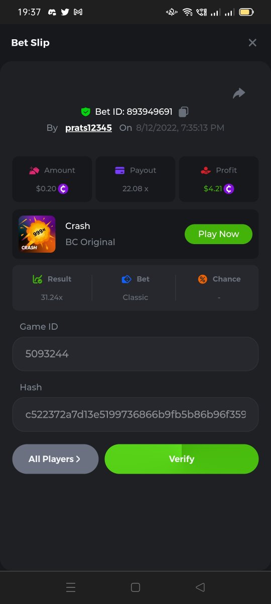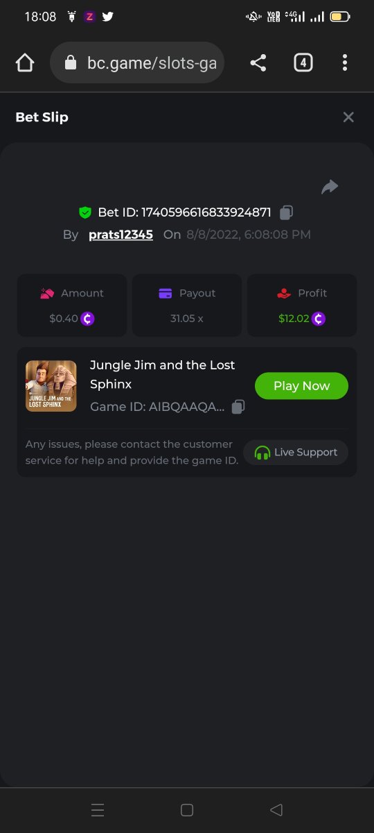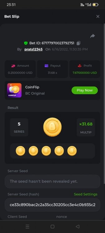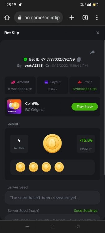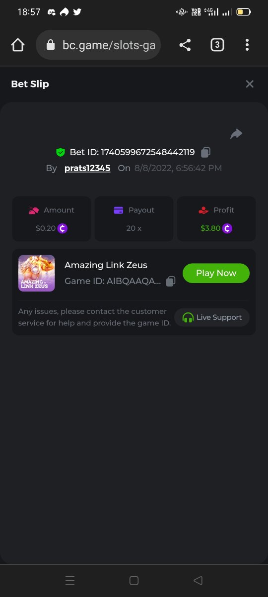 https://bc.game/sd/?sd=10KZ73TY38IHOZ Just to make it clear regarding the Bet amount which is 0.20$ posting a full screenshot of the same below: