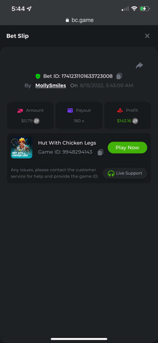 1. Hut With Chicken Legs: 180x https://bc.game/sd/?sd=10QWLX7011A32R