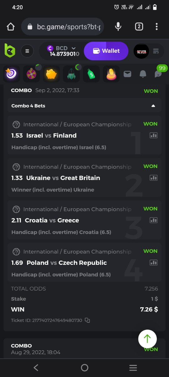 • To participate, post your Ticket ID, along with your Parlay link, as a reply to this thread as follows: Link bet: https://bc.game/sports/?bt-path=%2F%3FbtBookingCode%3D561A9D1 + Ticket ID 2126602890796736992
