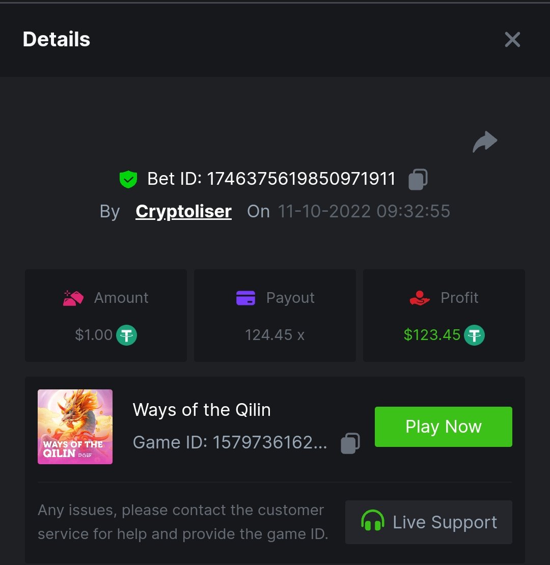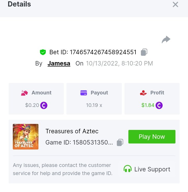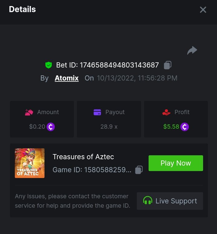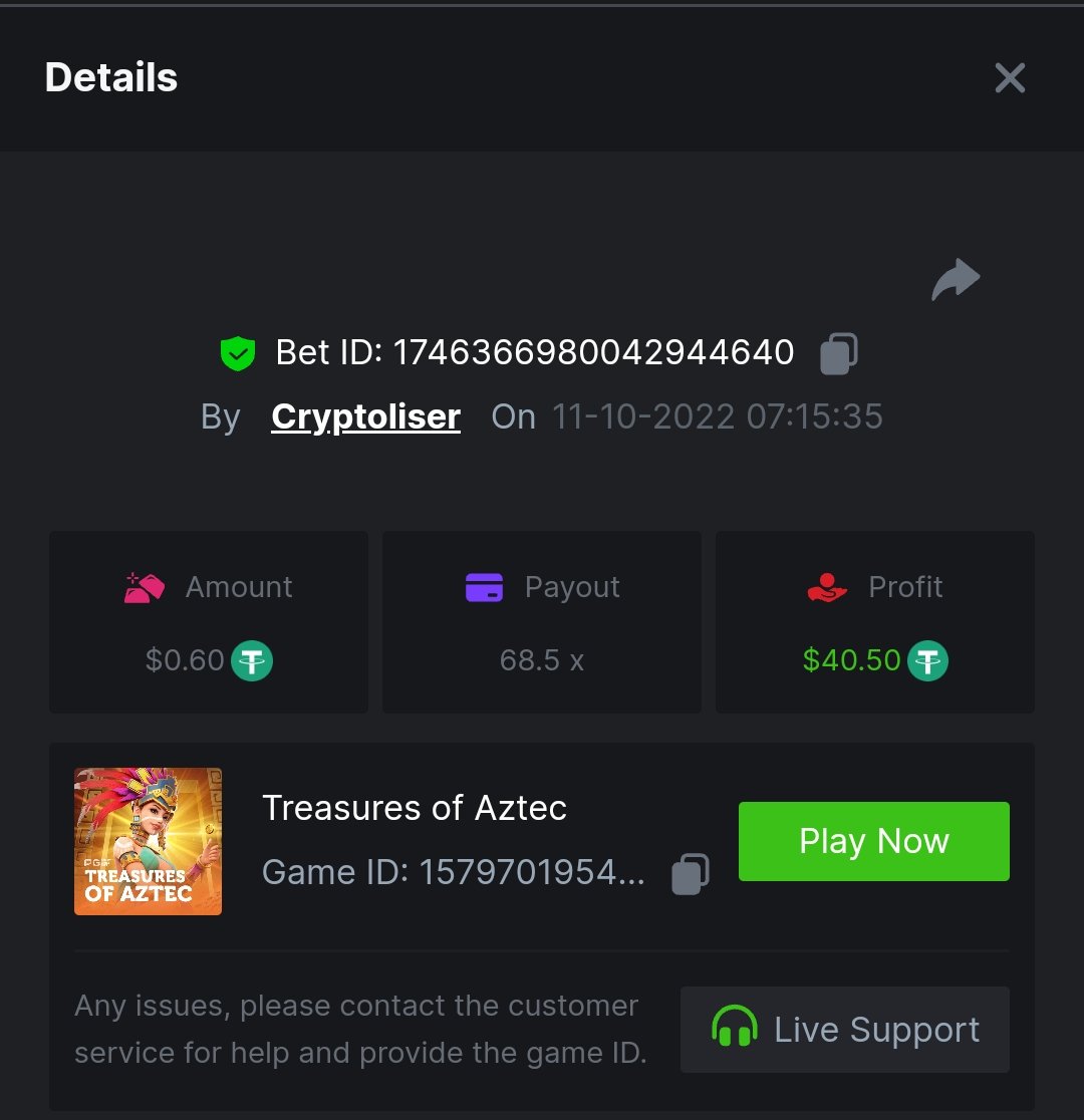 Sm0kes Posted October 13, 2022 Share Posted October 13, 2022 https://bc.game/#/sd/10UYOOAELCX72R Treasure of Aztec (97.3x) smokes Link to comment Share on other sites More sharing options...