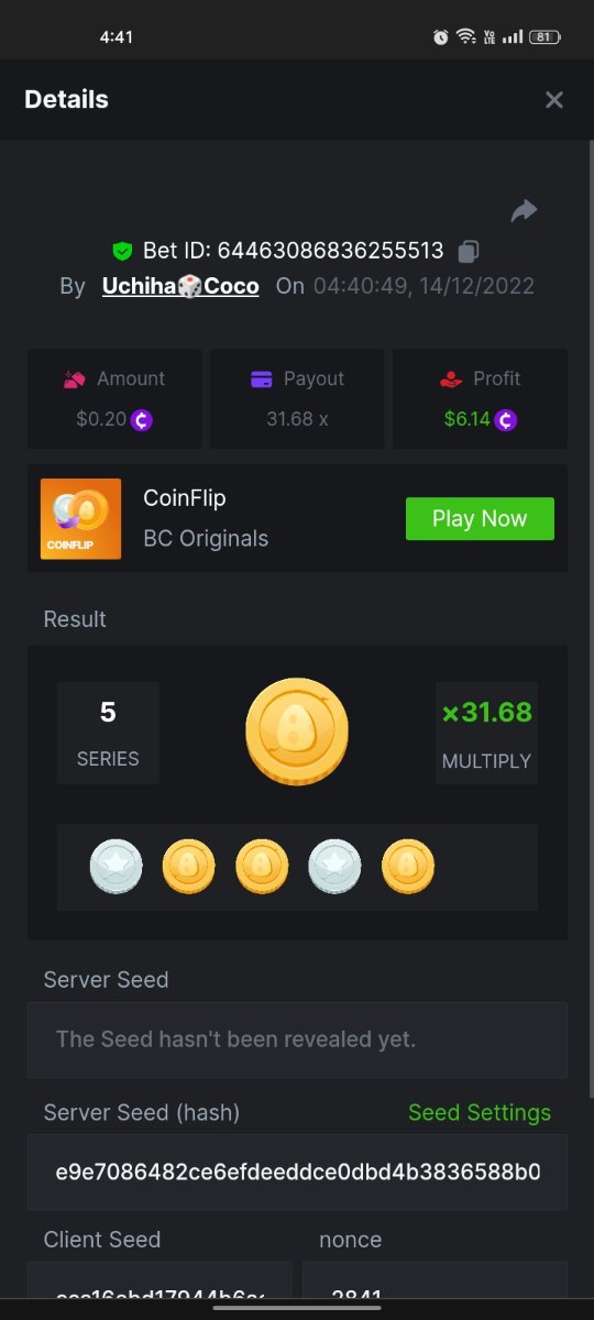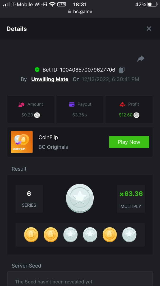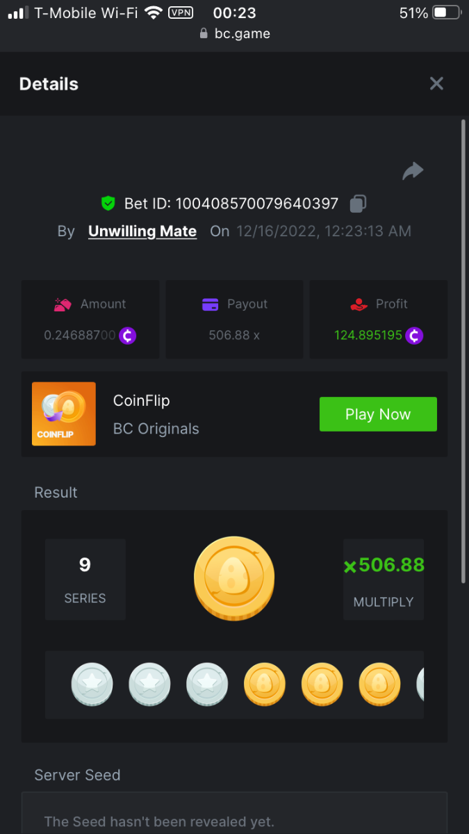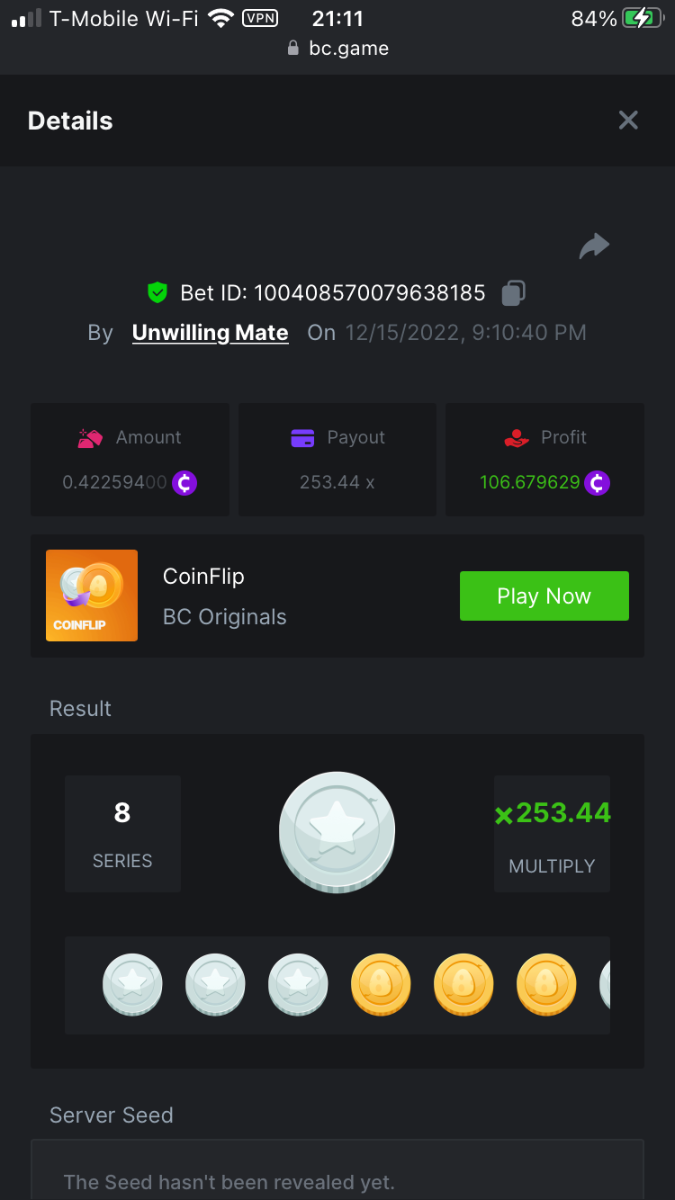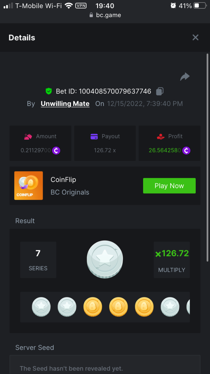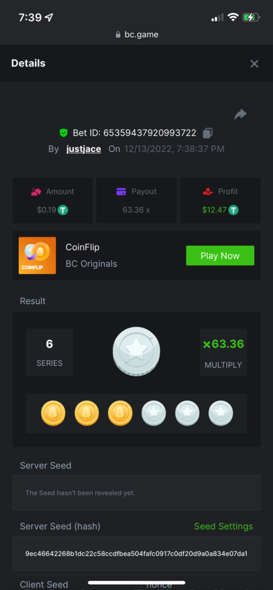 Bet ID https://bc.game/#/sd/10Z74AISW9VQXF