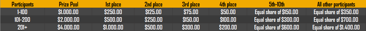 • The winners will win a share of the prize pool based on the detailed ranking below.                                                                                                                                                                                                                                                                                                                                                                     image.thumb.png.63c17589ebc3a2063cf6e3ebb90ea5d6.png