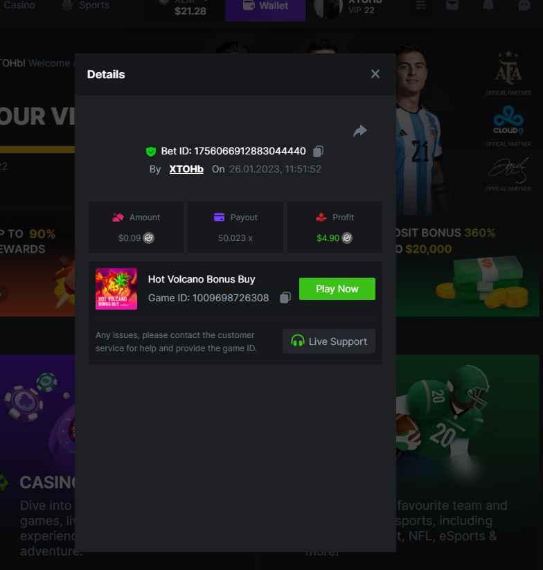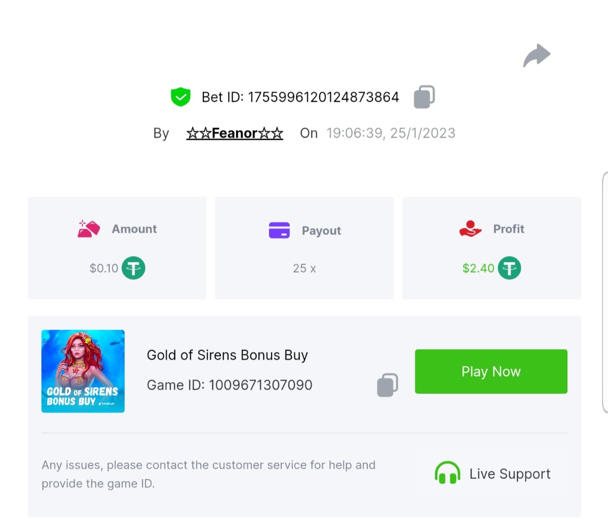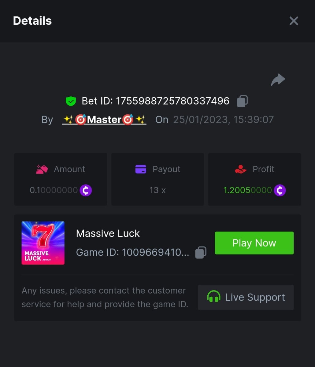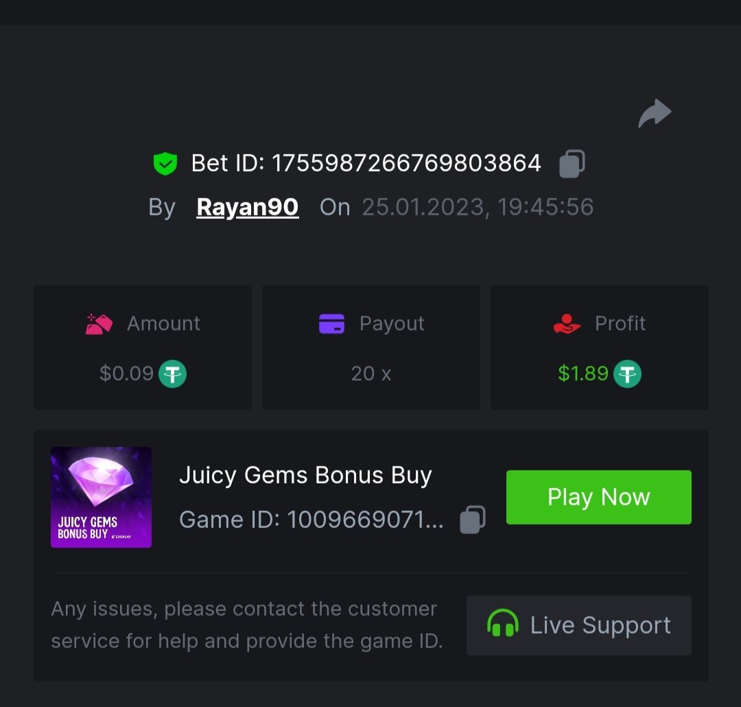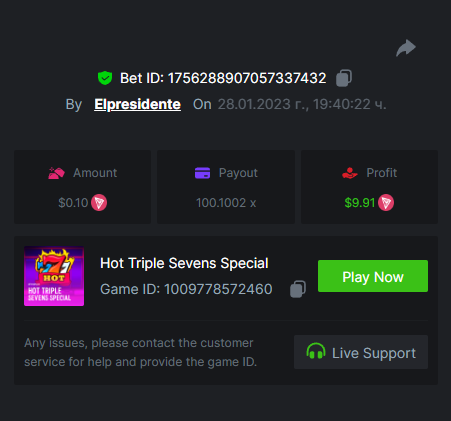 Admin BC_Jack Posted January 25, 2023 Admin Share Posted January 25, 2023 DURATION: 25th JAN - 1st FEB 09:00am GMTPRIZE POOL: $4,000 Hey Everyone! This week we will host our Top Tier battle on EVOPLAY. Your challenge is accomplishing the highest multiplier in ten selected games. The prize pool of up to $4,000 will be split among the winners, and to make it even more exciting, any participant who completes the extra bounty will receive an equal share of 10% of the prize pool. With incredible odds and a vast reward up for grabs, join us in this fantastic event! – (More details below). Eligible Games Win the highest multiplier on the Evoplay games listed below The highest multiplier reached in each game will be added together and counted as total points. Bonus buys are allowed. If the player submits multiple winning entries for the same game, the entry with the highest multiplier will be valid. How to Enter Access the game to select your Bet ID, click on the Share icon (↷) and then Copy link. Return to the topic, paste the link in the field "Reply to this topic..." E.g.: https://bc.game/#/sd/111ZK0YHPEPMVN Each eligible entry must have the Bet Slip URL, the non-inclusion of the link will disqualify participation in the event. In the same post, upload a screenshot of your win by clicking the game ID WITH VIEW IN USD mode ENABLED (accessible at the bottom of dropdown menu for your wallet up top, and Submit Reply. Done! This way, we can ensure that your bet indeed met the minimum requirement at the time of placing it: Example post - Link: https://bc.game/#/sd/111ZK0YHPEPMVN Minimum VIP Tier Must be VIP04 or higher in order to enter this event. Minimum Payout Minimum payout to qualify is 10x (in any game) for a valid entry. Minimum Bet Size Mega Greatest Catch Bonus buy - $0.10 Hot Volcano Bonus buy - $0.10 Gold Of Sirens bonus buy - $0.10 Magic Wheel - $0.10 Inner Fire bonus buy - $0.10 Hot Triple Seven Special - $0.10 Patricks Magic Field - $1.00 Rueda De Chile Bonus Buy - $0.10 Massive Luck - $0.10 Juicy Gems Bonus Buy - $0.10 Eligible Coins All cryptocurrencies are eligible (excepting JB, and BCL). Free Play Mode is not valid for this event. Prize Pool & Reward Breakdown The winners will win a share of the prize pool based on the detailed ranking below. Anyone who completes the side bounty will receive a share of a 10% of the prize pool. Participants Prize Pool 1st place 2nd place 3rd place 4th place 5th-10th 11th+ Bounty Prize 1-100 $2,000 $500 $250 $150 $100 Equal share of $300 Equal share of $500 Equal share of $200 101-150 $3,000 $750 $375 $225 $150 Equal share of $450 Equal share of $750 Equal share of $300 151-200 $4,000 $1,000 $500 $300 $200 Equal share of $600 Equal share of $1,000 Equal share of $400 BOUNTY - Share a bet that shows exactly 50x payout on any of the ten games within the timeframe of this event and you will receive a share of 10% of the prize pool! If nobody wins exactly the payout, the player/s closest to the payout will win this bounty! Original rules apply with a minimum bet, minimum payout & VIP. GENERAL TERMS Please combine all of your hits together in a SINGLE post. Edit your existing post for additional hits, don't create a new post. Each eligible entry must have the Bet Slip URL, failure to include it will disqualify participation in the event. Bet Slip image is not mandatory. Bets must be posted within 24 hours of placing bet in order to keep things fair for everyone. Bets must be made during the specified time window stated above. This thread will lock automatically when the time period is over. One (1) entry per household. Anyone found attempting to win multiple prizes will be disqualified from this challenge as well as all future challenges. Failure to follow instructions will result in your submission being null and void. By entering this challenge, you acknowledge that BC.Game has the final decision on results and placement. Payouts will be distributed after the event is finished. Please note that it could take up to 72 hours after the completion of the event. Link to comment Share on other sites More sharing options...