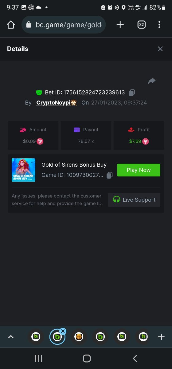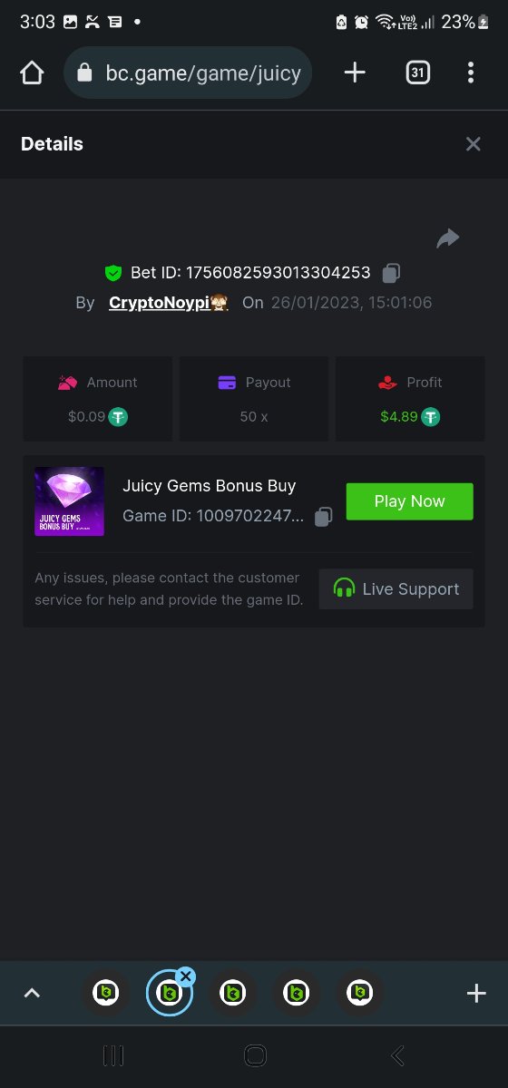 CryptoNoypii Posted January 25, 2023 Share Posted January 25, 2023 BOUNTY 50X https://bc.game/#/sd/1126TDY9PW3383 Mega Greastest catch BB 348x https://bc.game/#/sd/1126UVMV7T6783 Rueda De chile BB 1058x https://bc.game/#/sd/1124I7DL8NUGPF Hot Triple Special 210x https://bc.game/#/sd/1129IX2QUIBZMB Juicu Gem BB 85.05x https://bc.game/#/sd/11292UNUFIKOIB Gold of Siren BB https://bc.game/#/sd/1128QF4TFRKL5F PATRICK MINED FIELDS 65.07X https://bc.game/#/sd/11294MLBSA0RV7 Inner fire BB 148.94x https://bc.game/#/sd/1129HVMTVFGB2R Massive luck https://bc.game/#/sd/1129JS3Y8MIP77 Hot Volcano BB 187x https://bc.game/#/sd/1129LGVEZW03KJ Link to comment Share on other sites More sharing options...
