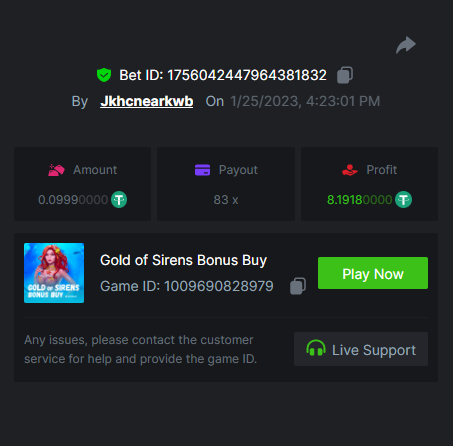 Saaho2022 Posted January 26, 2023 Share Posted January 26, 2023 Hot Triple Sevens Special - 71.0711xhttps://bc.game/#/sd/11267415LAZMDV Rueda De Chile Bonus Buy - 55.0551 https://bc.game/#/sd/11267I6PGN9YJ7 Patrick's Magic Field - 10.391x https://bc.game/#/sd/11267PK2O43383 Juicy Gems Bonus Buy - 31.031x https://bc.game/#/sd/112681G66MJV9V Inner Fire Bonus Buy - 28.9278x https://bc.game/#/sd/11268FS68L9IJ7 Hot Volcano Bonus Buy - 53.0531 https://bc.game/#/sd/1126AIG6Q1CKYB Gold of Sirens Bonus Buy 30.3303x https://bc.game/#/sd/1126AV2TWEJLLF Link to comment Share on other sites More sharing options...