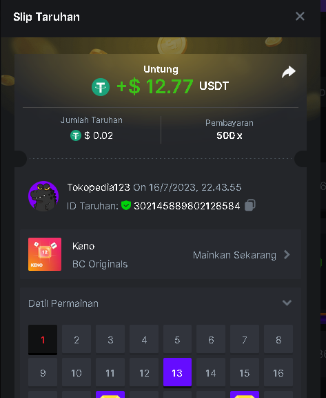 Moderator Giandreas Posted July 16, 2023 Moderator Share Posted July 16, 2023 Read Carefully Before Start To Hunt Forum Daily Challenges #298 Keno Hunt : Win the highest pay out Min Payout requirement 90x Min Level 4 ️Duration Starting : Now End time : 23.59 UTC Time How to Join? Make screenshot + paste your bet link + UID or Profile link Any coin, with min bet 0.01 USD is allowed (jb/bb/bcl not allowed) Reward Prizes 1st Place.....$7 BCD 2nd Place.....$5 BCD 3rd Place.....$4 BCD 4th Place.....$3 BCD 5th Place.....$2 BCD 🏵 Winners will be announcing next day after Roll Point! Link to comment Share on other sites More sharing options...