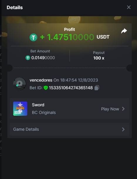 Moderator Giandreas Posted August 12, 2023 Moderator Share Posted August 12, 2023 Read Carefully Before Start To Hunt Forum Daily Challenges #325 Sword Hunt : Sword Win the highest pay out Min Payout 20x Min Level 4 ️Duration Starting : Now End time : 23.59 UTC Time How to Join? Make screenshot + paste your bet link + UID or Profile link Any coin, with min bet 0.01 USD is allowed (jb/bb/bcl not allowed) Reward Prizes 1st Place.....$7 BCD 2nd Place.....$5 BCD 3rd Place.....$4 BCD 4th Place.....$3 BCD 5th Place.....$2 BCD 🏵 Winners will be announcing next day after Roll Point! 1 Link to comment Share on other sites More sharing options...
