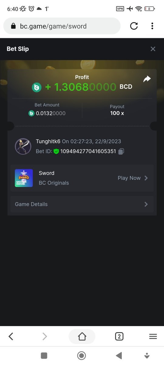 Moderator Giandreas Posted September 21, 2023 Moderator Share Posted September 21, 2023 Read Carefully Before Start To Hunt Forum Daily Challenges #365 SwordHunt : Sword Win the highest pay out Min Payout : x20 Min Level 4️Duration Starting : Now End time : 23.59 UTC Time How to Join? Make screenshot + paste your bet link + UID or Profile link Any coin, with min bet 0.01 USD is allowed (jb/bb/bcl not allowed)Reward Prizes 1st Place.....$7 BCD 2nd Place.....$5 BCD 3rd Place.....$4 BCD 4th Place.....$3 BCD 5th Place.....$2 BCD 🏵 Winners will be announcing next day after Roll Point! 2 Link to comment Share on other sites More sharing options...