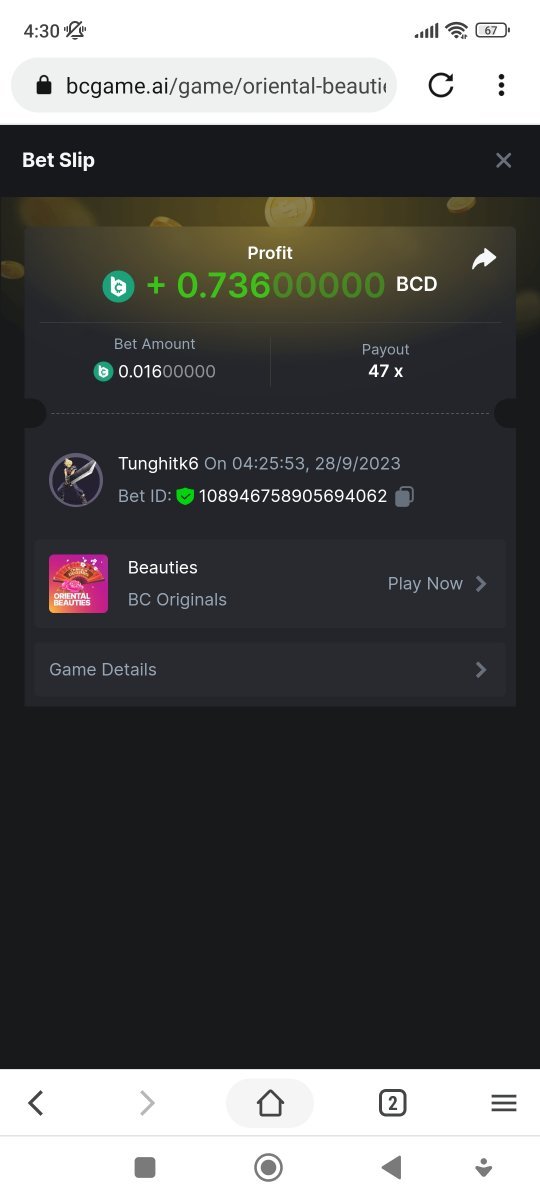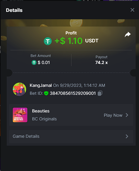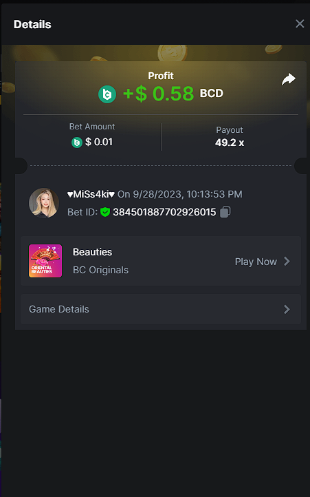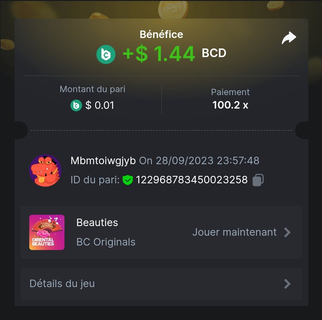 Moderator Giandreas Posted September 28, 2023 Moderator Share Posted September 28, 2023 Read Carefully Before Start To Hunt Forum Daily Challenges #371 oriental beautiesHunt : oriental beauties Win the highest pay out Min Payout : x20 Min Level 4 ️Duration Starting : Now End time : 23.59 UTC Time How to Join? Make screenshot + paste your bet link + UID or Profile link Any coin, with min bet 0.01 USD is allowed (jb/bb/bcl not allowed) Reward Prizes 1st Place.....$7 BCD 2nd Place.....$5 BCD 3rd Place.....$4 BCD 4th Place.....$3 BCD 5th Place.....$2 BCD 🏵 Winners will be announcing next day after Roll Point! 1 Link to comment Share on other sites More sharing options...