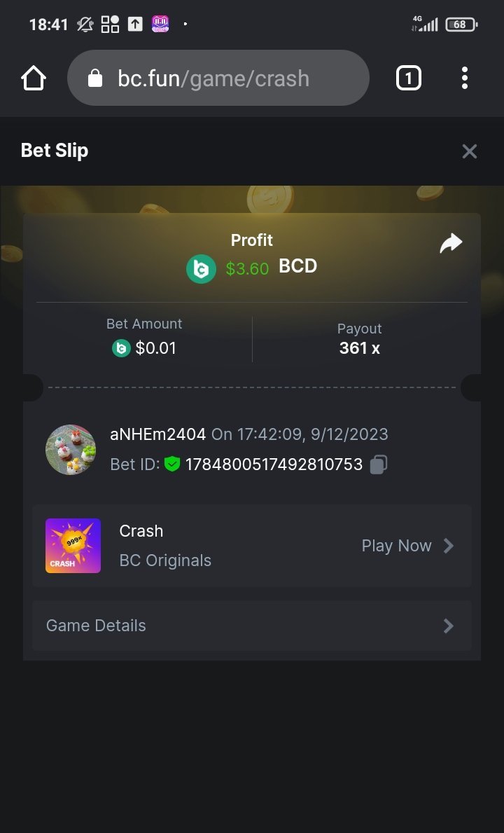 Moderator Giandreas Posted December 9, 2023 Moderator Share Posted December 9, 2023 Read Carefully Before Start To Hunt Forum Daily Challenges #443Hunt : Crash Win the highest pay out Min Payout : x20 Min Level 4 ️Duration Starting : Now End time : 23.59 UTC Time How to Join? Make screenshot + paste your bet link + UID or Profile link Any coin, with min bet 0.01 USD is allowed (jb/bb/bcl not allowed) Reward Prizes 1st Place.....$7 BCD 2nd Place.....$5 BCD 3rd Place.....$4 BCD 4th Place.....$3 BCD 5th Place.....$2 BCD 🏵 Winners will be announcing next day after Roll Point! Link to comment Share on other sites More sharing options...