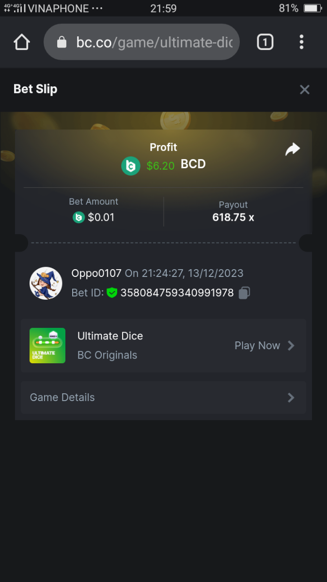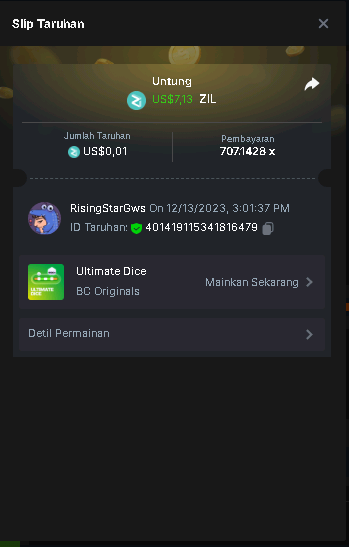 Moderator Giandreas Posted December 13, 2023 Moderator Share Posted December 13, 2023 Read Carefully Before Start To Hunt Forum Daily Challenges #447Hunt : Ultimate Dice Win the highest pay out Min Payout : x50 Min Level 10️Duration Starting : Now End time : 23.59 UTC Time How to Join? Make screenshot + paste your bet link + UID or Profile link Any coin, with min bet 0.01 USD is allowed (jb/bb/bcl not allowed)Reward Prizes 1st Place.....$7 BCD 2nd Place.....$5 BCD 3rd Place.....$4 BCD 4th Place.....$3 BCD 5th Place.....$2 BCD 🏵 Winners will be announcing next day after Roll Point! Link to comment Share on other sites More sharing options...