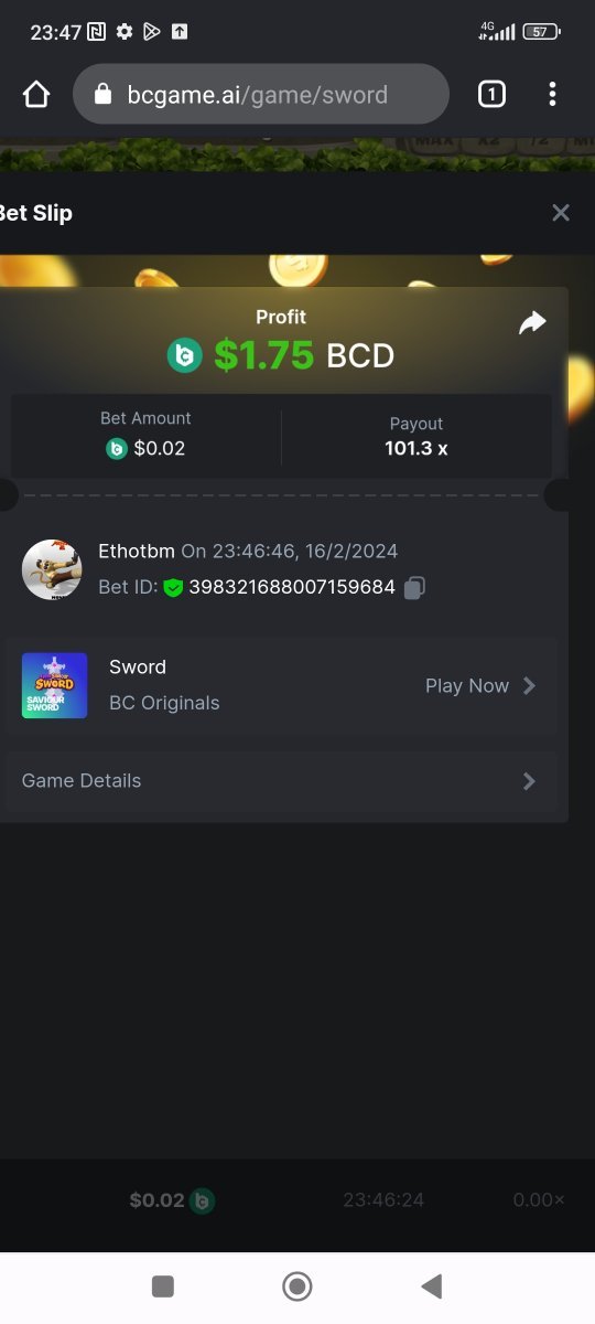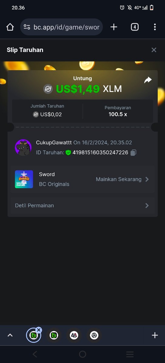 Moderator Giandreas Posted February 16, 2024 Moderator Share Posted February 16, 2024 Read Carefully Before Start To Hunt Forum Daily Challenges #512Hunt : Sword Win the highest pay out Min Payout : x20 Min Level 10️Duration Starting : Now End time : 23.59 UTC Time How to Join? Make screenshot + paste your bet link + UID or Profile link Any coin, with min bet 0.01 USD is allowed (jb/bb/bcl not allowed)Reward Prizes 1st Place.....$7 BCD 2nd Place.....$5 BCD 3rd Place.....$4 BCD 4th Place.....$3 BCD 5th Place.....$2 BCD 🏵 Winners will be announcing next day after Roll Point! Link to comment Share on other sites More sharing options...