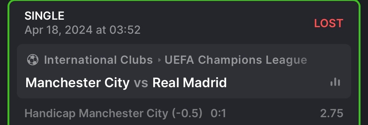So, in the scenario where the match ended 0:1 against Manchester City, despite the handicap, they still scored fewer goals than their opponent. As a result, the bet on Manchester City (-0.5) would be deemed unsuccessful.