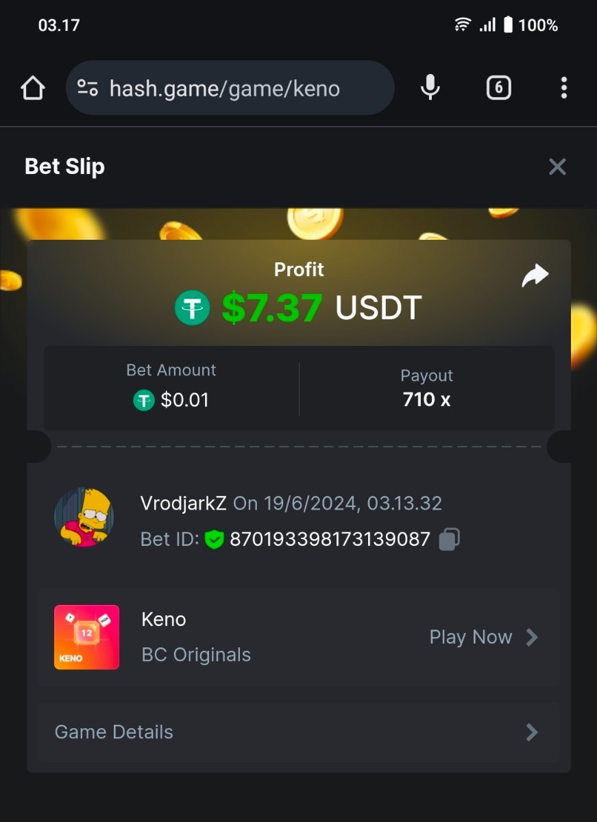 Moderator Giandreas Posted June 18, 2024 Moderator Share Posted June 18, 2024 Read Carefully Before Start To Hunt Forum Daily Challenges #635Hunt : Keno Win the highest pay out Min Payout : 90x Min Level 10 ️Duration Starting : Now End time : 23.59 UTC Time How to Join? Make screenshot + paste your bet link + UID or Profile link Any coin, with min bet 0.01 USD is allowed (jb/bb/bcl not allowed) Reward Prizes 1st Place.....$7 BCD 2nd Place.....$5 BCD 3rd Place.....$4 BCD 4th Place.....$3 BCD 5th Place.....$2 BCD 🏵 Winners will be announcing next day after Roll Point! Link to comment Share on other sites More sharing options...