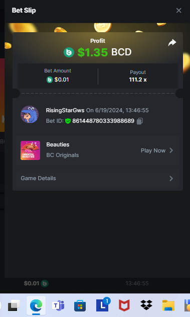 2nd place . . . .RisingStarGws   111.2 x 1.35 . . . .5$ BCD