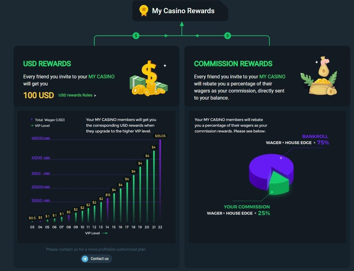 *The referrals needs to upgrade their VIP levels to unlock the rewards for their My Casino affiliate