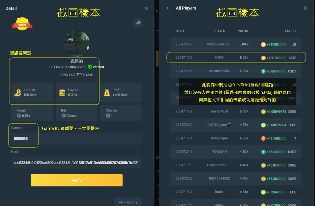 參與挑戰並達成目標者、需在下方回覆此討論串、粘貼螢幕截圖、並提供該局 Game-ID 才算是完成整個任務
