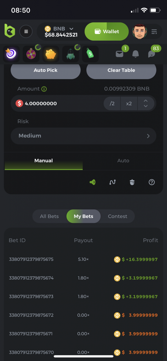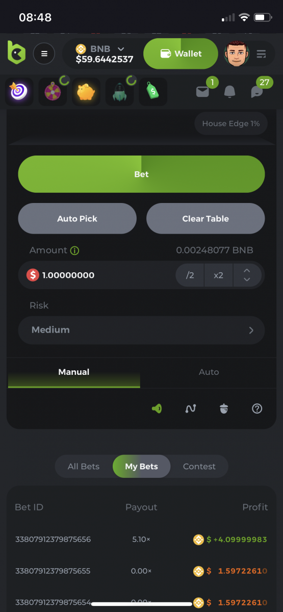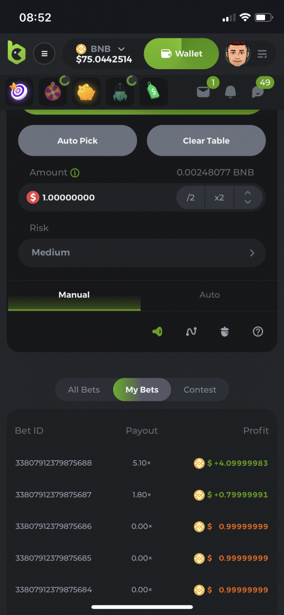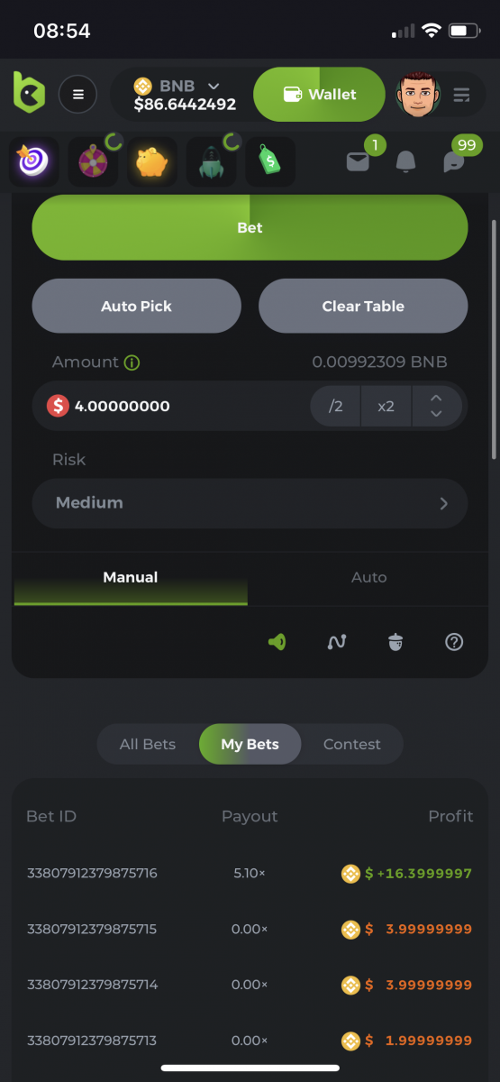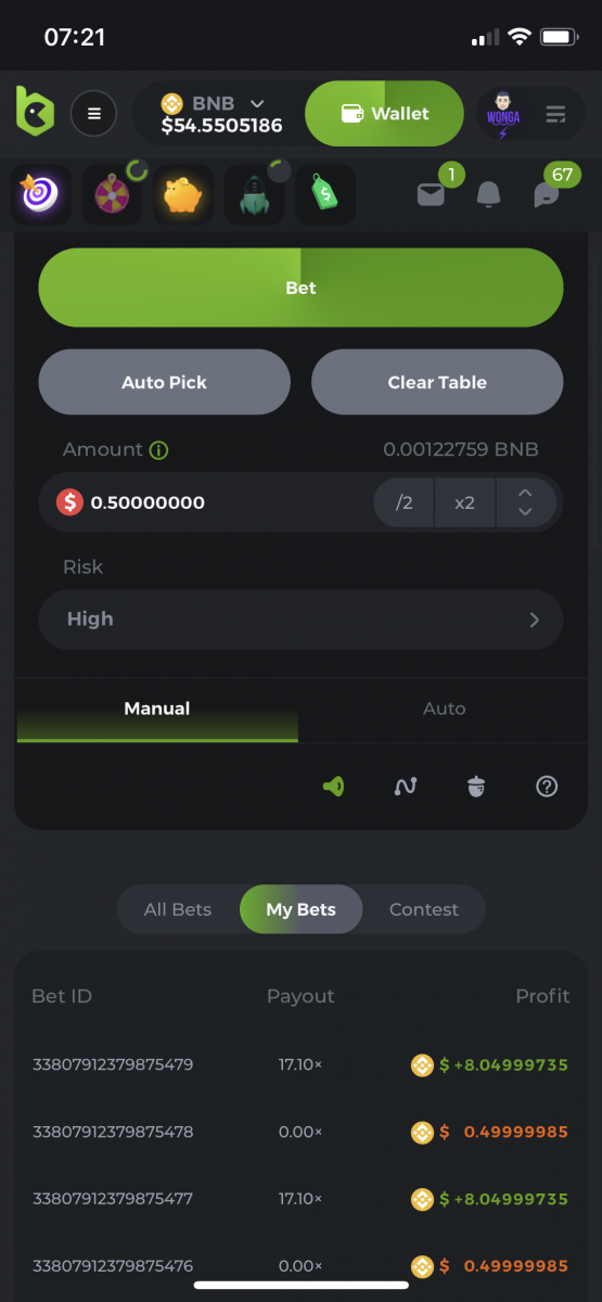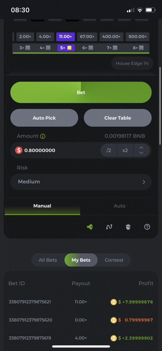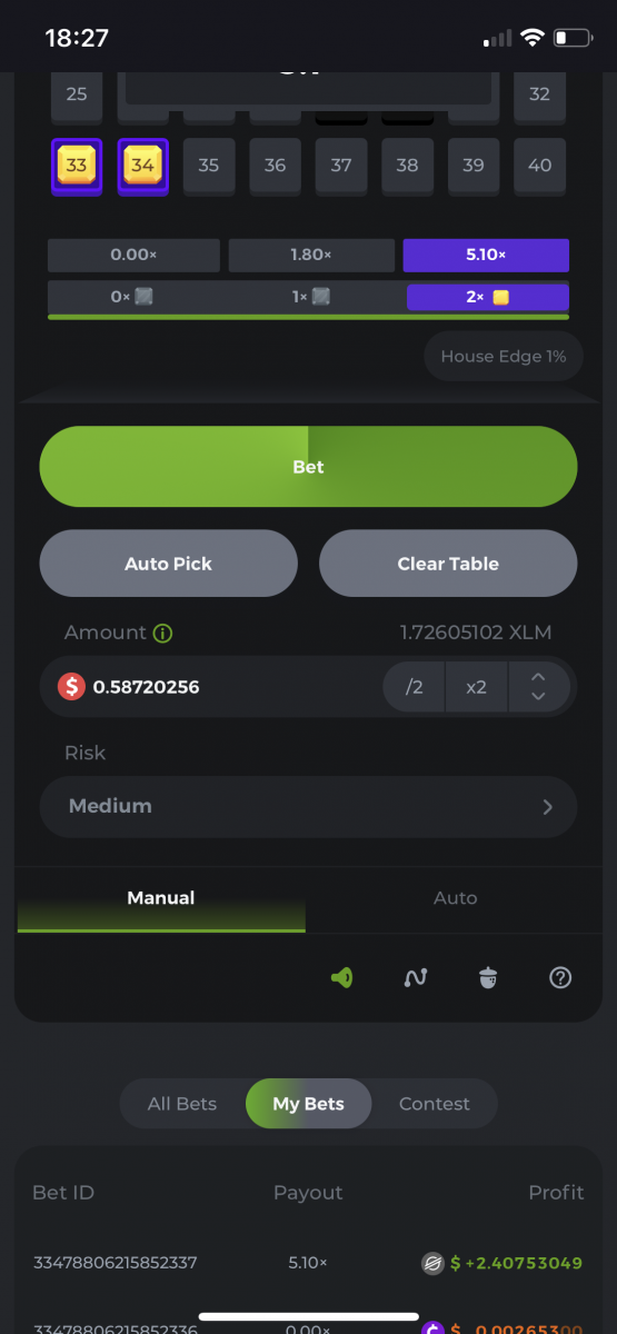 • The payouts must be EXACT hits (56x and 50x are not the same) - if you can't find a payout, try changing the risk level to medium or high.