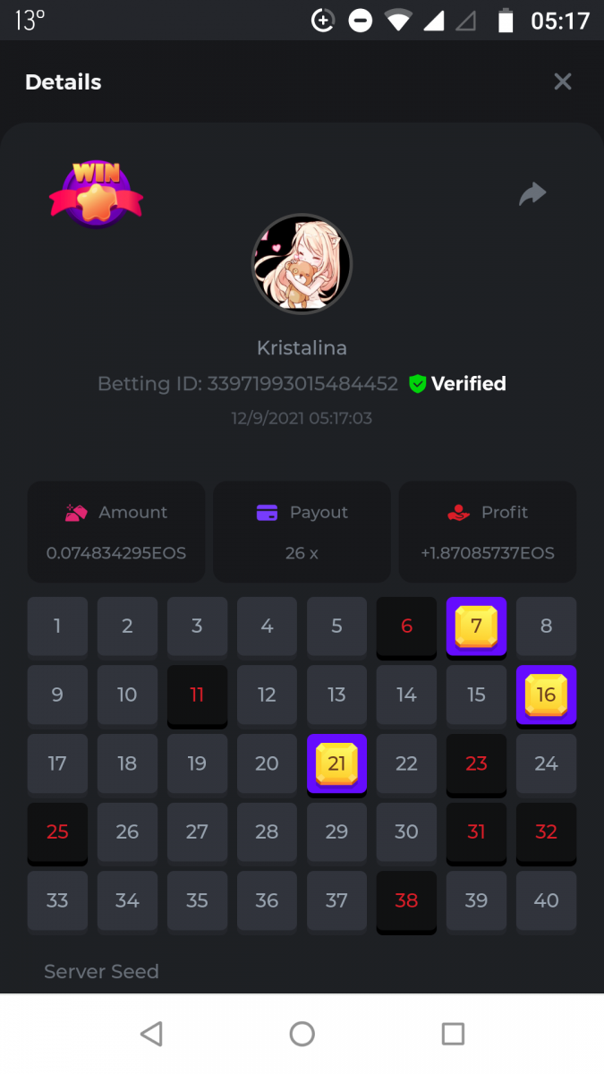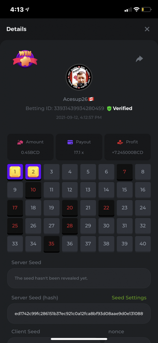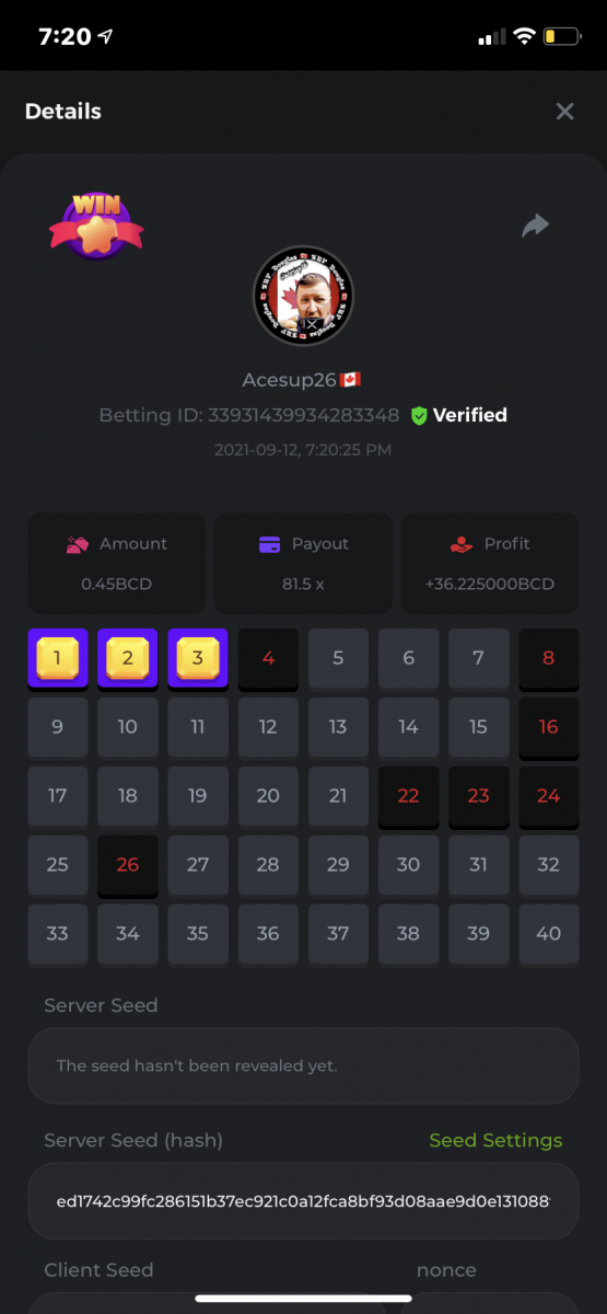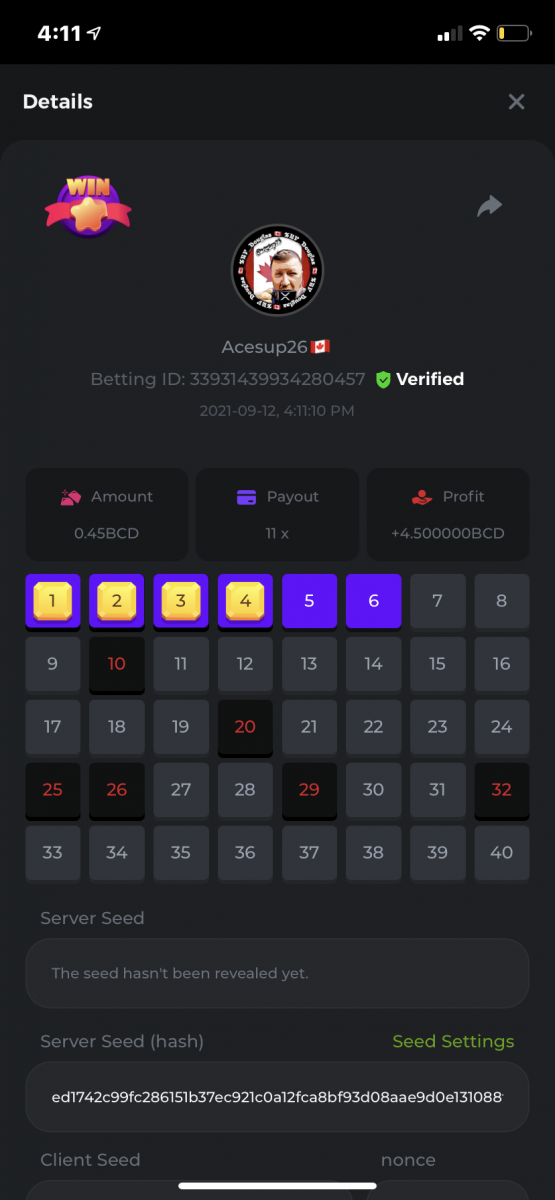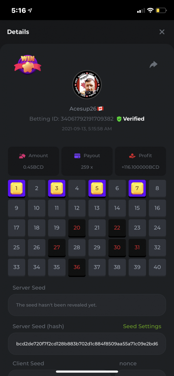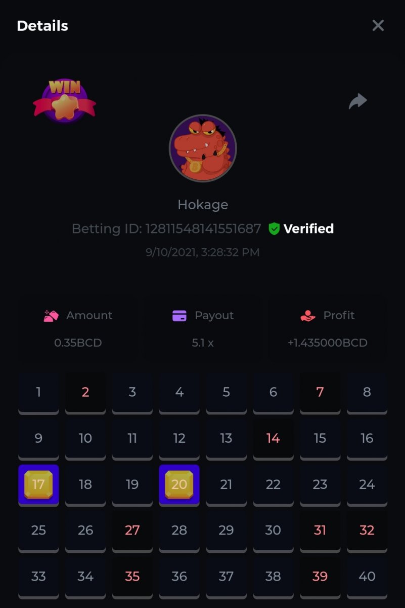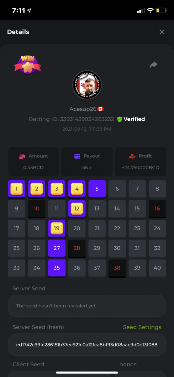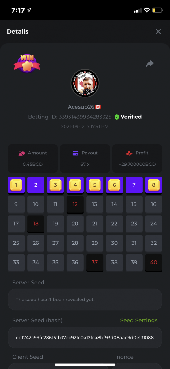 Nathsman Posted September 11, 2021 Share Posted September 11, 2021 On 6/9/2021 at 22:19, digitaldash said: DESAFÍO DE NIVEL SUPERIOR # 3 Inicio: 06:00, 7 de septiembre GMT Finaliza: 06:00, 14 de septiembre GMT ¡Bienvenido de nuevo! Quizás se pregunte por qué este desafío cuesta solo $ 2,000. Tendremos dos desafíos separados esta semana, y la segunda parte llegará muy pronto, ¡así que estén atentos a eso! ¡Esta semana, tenemos un desafío KENO! ¿Cuál es el desafío ? Complete la mayor cantidad de los siguientes 20 pagos en el modo multijugador de KENO o en el modo para un jugador de KENO . ¡Debes alcanzar un MÍNIMO de 5 de los pagos para calificar! 5.10x - 11x - 17.1x - 26x - 30x - 56x - 67x - 81.5x - 100x - 180x - 259x - 270x - 390x - 450x - 500x - 600x - 710x - 800x - 900x - 1000x Cada pago obtenido arriba cuenta como 1 punto, con un máximo de 20 puntos. Si hay un empate, el jugador con la apuesta total más alta (en USD) será el ganador. Los pagos deben ser resultados EXACTOS (56x y 50x no son lo mismo). Si no puede encontrar un pago, intente cambiar el nivel de riesgo a medio o alto. Nivel VIP mínimo Debe ser VIP10 o superior para participar en este desafío. Tamaño mínimo de la apuesta Equivalente a $ 0.35 (verifique los montos de monedas individuales a continuación) Monedas elegibles Todas las monedas son elegibles (excepto JB) Premios disponibles 1er lugar ...... $ 500 2do lugar ..... $ 375 3er puesto. .... $ 250 4to lugar ...... $ 125 5 ° al 25 ° ...... $ 25 Fondo de participación ... $ 250 dividido en partes iguales Cómo entrar Para participar, copie el ID de apuesta de la apuesta que le gustaría enviar. Una vez que lo haya copiado, publíquelo como respuesta a este hilo de la siguiente manera: ID de apuesta : 1708854428417660423 En la misma publicación, cargue una captura de pantalla de su ganancia haciendo clic en la ID del juego CON VISTA EN modo USD HABILITADO (accesible en la parte inferior del menú desplegable de su billetera en la parte superior. De esta manera, podemos asegurarnos de que su apuesta realmente cumplió con el requisito mínimo al momento de colocarlo: Combine todos sus éxitos en una SOLA publicación. Edita, no crees una nueva publicación. Las apuestas deben publicarse dentro de las 24 horas posteriores a la realización de la apuesta para que las cosas sean justas para todos. Las apuestas deben realizarse durante las ventanas de tiempo especificadas anteriormente. Este hilo se bloqueará automáticamente cuando termine el período de tiempo. Una (1) entrada por hogar . Cualquiera que intente ganar varios premios será descalificado de este desafío, así como de todos los desafíos futuros. Además, ¡irás al MURO DE LA VERGÜENZA para que todos vean que eres una estafa! Si no sigue las instrucciones, su envío será nulo y sin efecto. ¡Y que empiecen las carreras! Buena suerte a todos, esperamos ver quién gana esta semana. Link to comment Share on other sites More sharing options...
