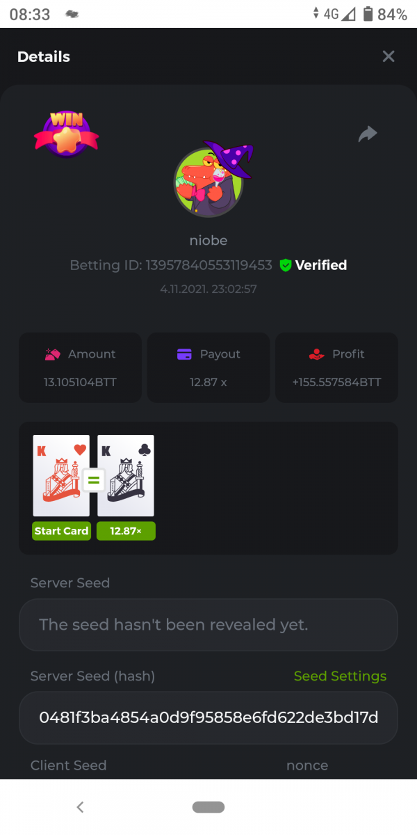 Betting ID: 34846336687801314
