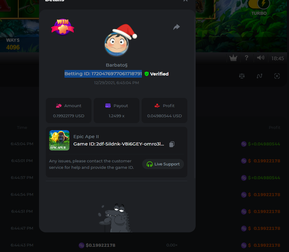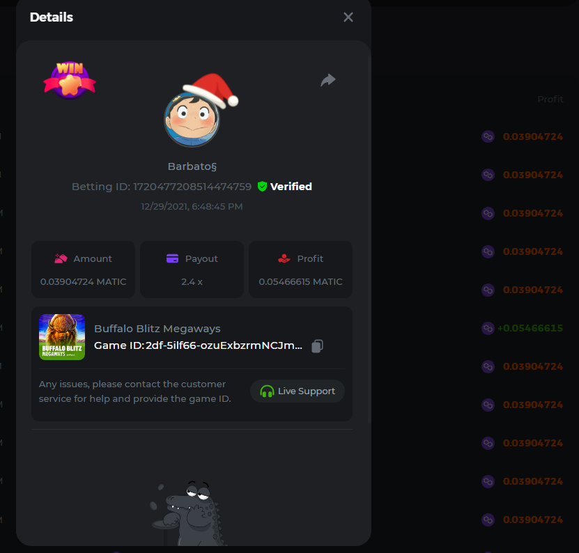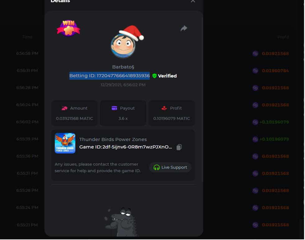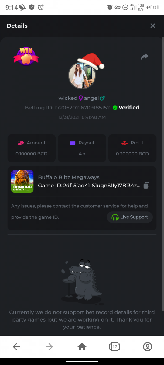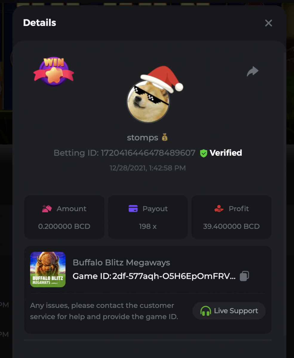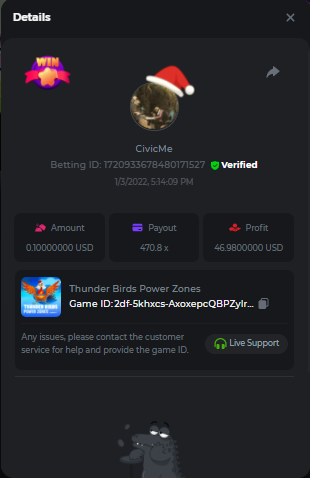 • In the same post, upload a screenshot of your win by clicking the game ID WITH VIEW IN USD mode ENABLED (accessible at the bottom of dropdown menu for your wallet up top. This way, we can ensure that your bet indeed met the minimum requirement at the time of placing it: