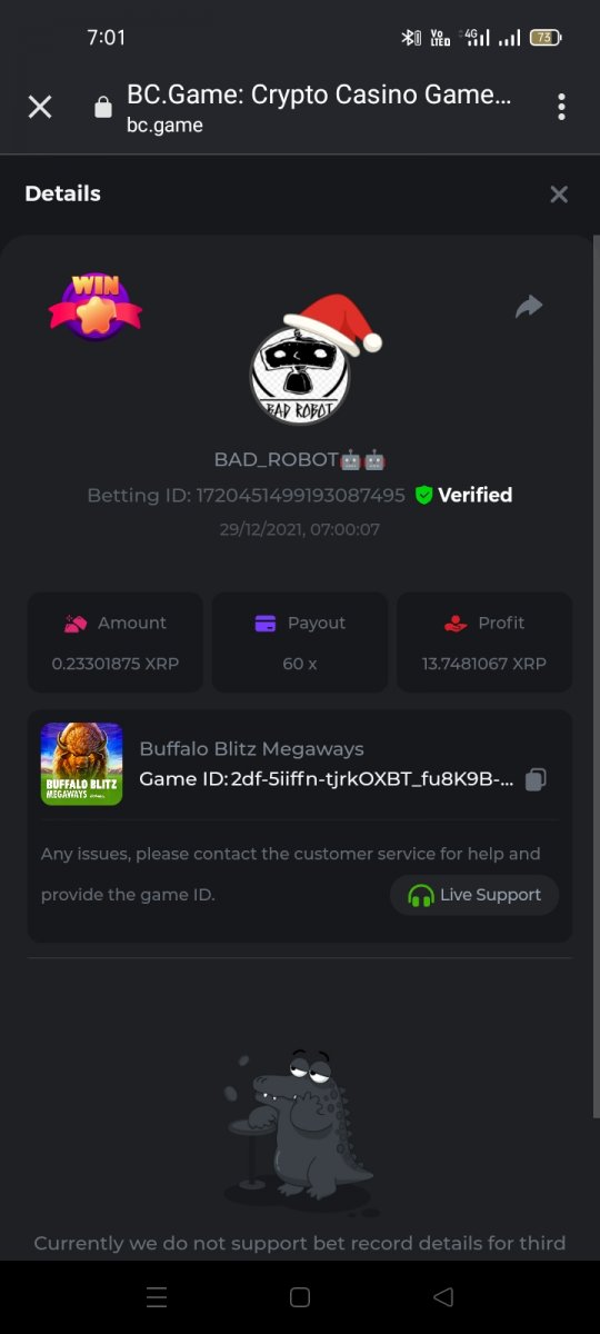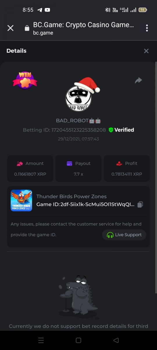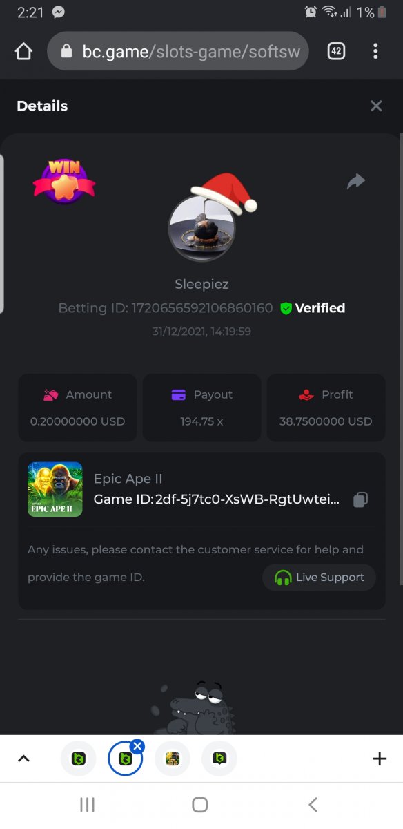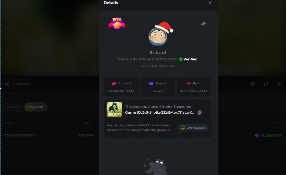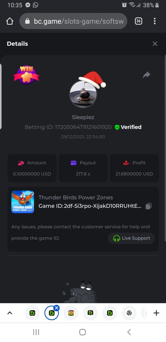 • In the same post, upload a screenshot of your win by clicking the game ID WITH VIEW IN USD mode ENABLED (accessible at the bottom of dropdown menu for your wallet up top. This way, we can ensure that your bet indeed met the minimum requirement at the time of placing it: