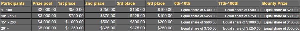 • The winners will win a share of the prize pool based on the detailed ranking below. Anyone who completes the side bounty will receive a share of a 10% of the prize pool.