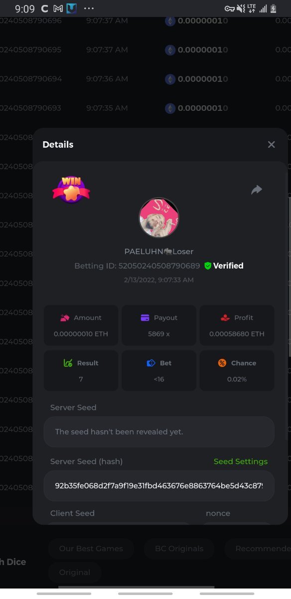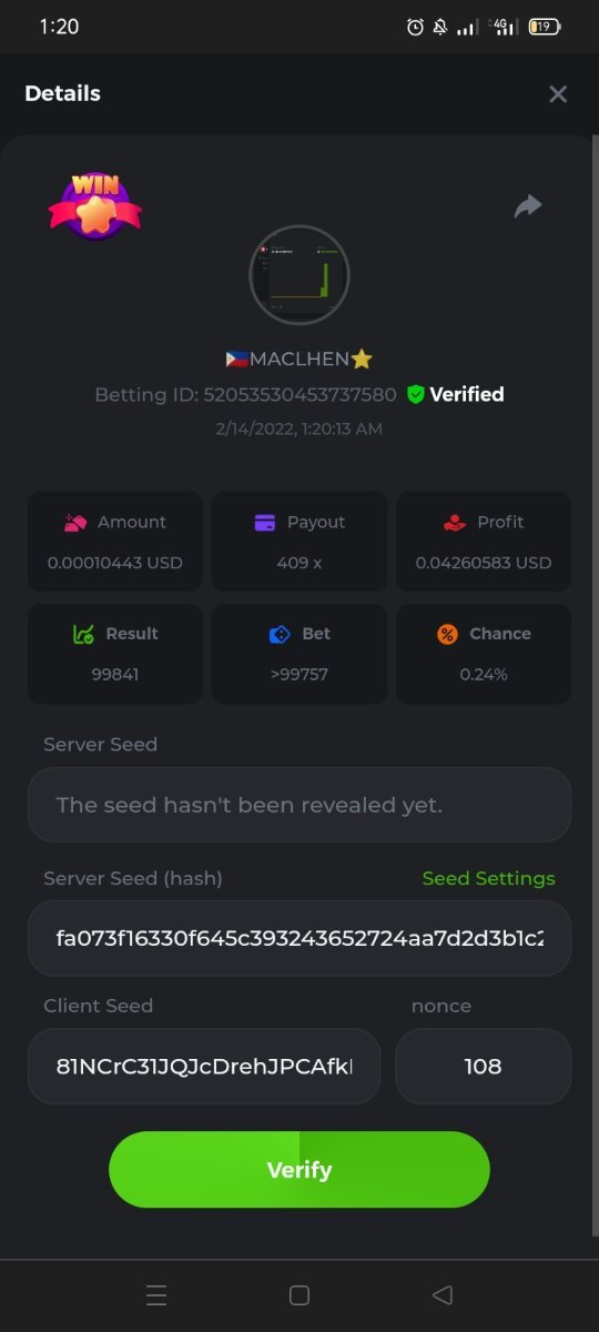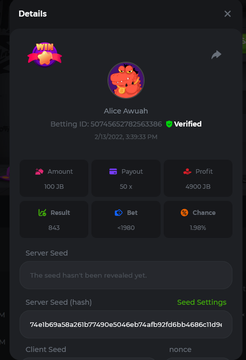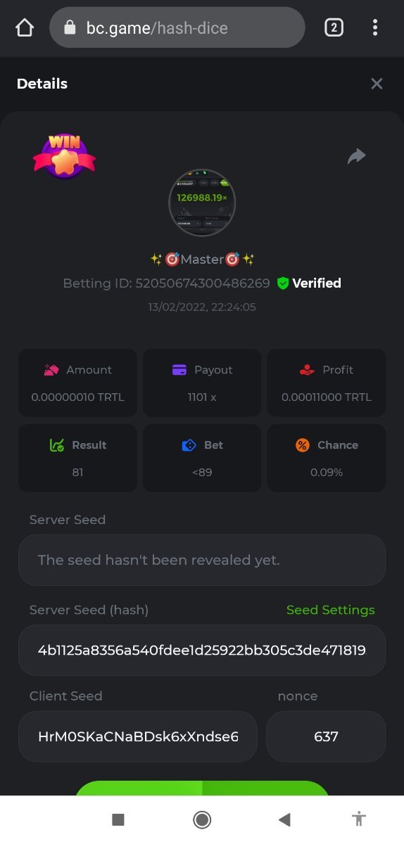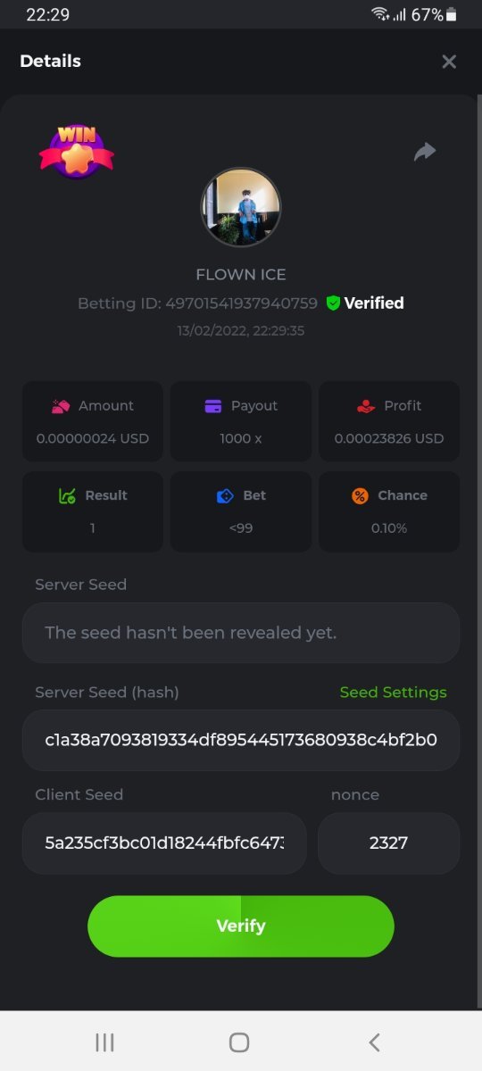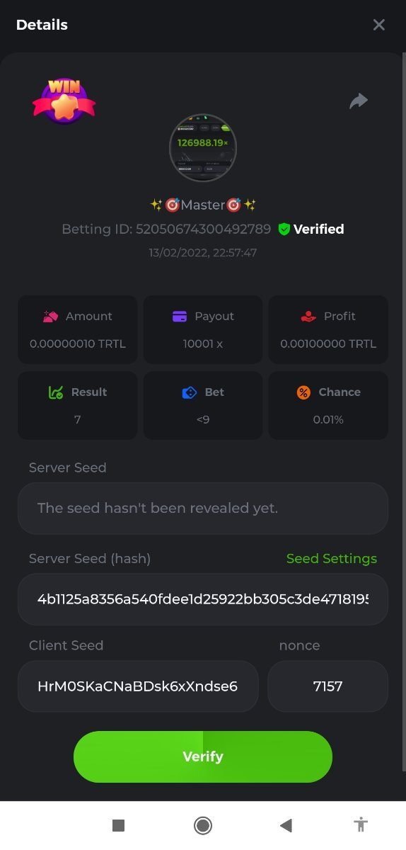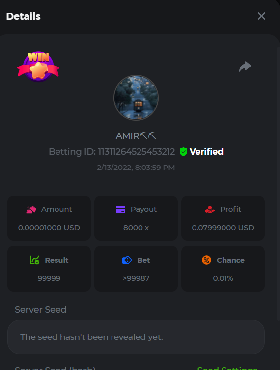 amirhaji Posted February 13, 2022 Share Posted February 13, 2022 Betting ID:11311264525454240 i got 29900x but i missed click to stop it Link to comment Share on other sites More sharing options...