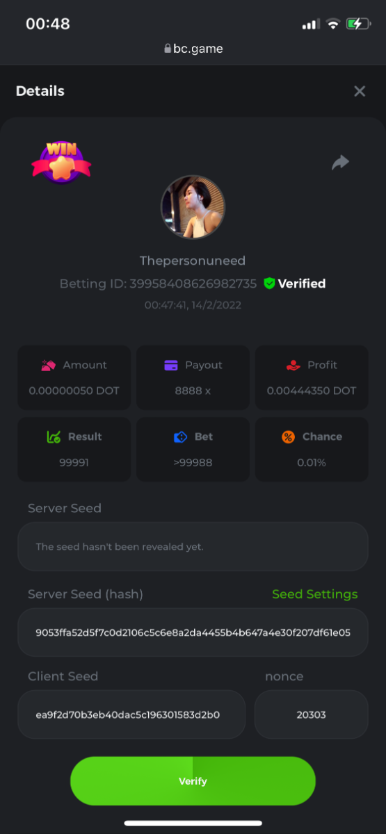 ThePersonYouLove Posted February 13, 2022 Share Posted February 13, 2022 1 minute ago, amirhaji said: Betting ID:11311264525454240 i got 29900x but i missed click to stop it u 1st Link to comment Share on other sites More sharing options...