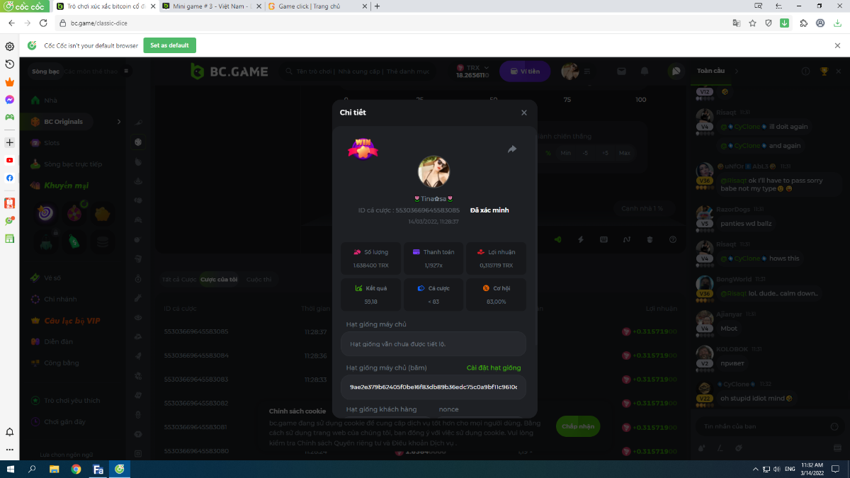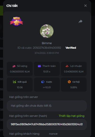 MVP-PQ Posted March 13, 2022 Share Posted March 13, 2022 🏵Mini game #3🏵 Thời gian bắt đầu: 11:00 ngày 13/03/2022(GMT+7) Thời gian kết thúc: 23:00 ngày 14/03/2022(GMT+7) TIÊU ĐỀ THỬ THÁCH: Thách thức là gì? Trò chơi: Limbo, Classic Dice, Hash Dice. Người chơi đặt cược tối thiểu $0.01 và đạt lợi nhuận 2$ trở lên. Ai hành động có lợi nhuận cao hơn sẽ là người chiến thắng Nếu có lợi nhuận bằng nhau thì sẽ tính người hành động sớm hơn VIP tối thiểu Không có cấp độ VIP tối thiểu. Min bet: $ 0.01 USD của bất kỳ đồng xu nào Giải Thưởng: 5$ 3$ 2$ 🎗4-10: 1$ 1. Không sử dụng nhiều tài khoản 2. Các cược được gửi trước hoặc sau ngày đến hạn đều không được chấp nhận 3. Người chiến thắng sẽ được công bố 24 giờ sau khi kết thúc thử thách BC Game chúc các bạn có những giây phút vui vẻ và nhiều lợi nhuận Chúc may mắn Link to comment Share on other sites More sharing options...