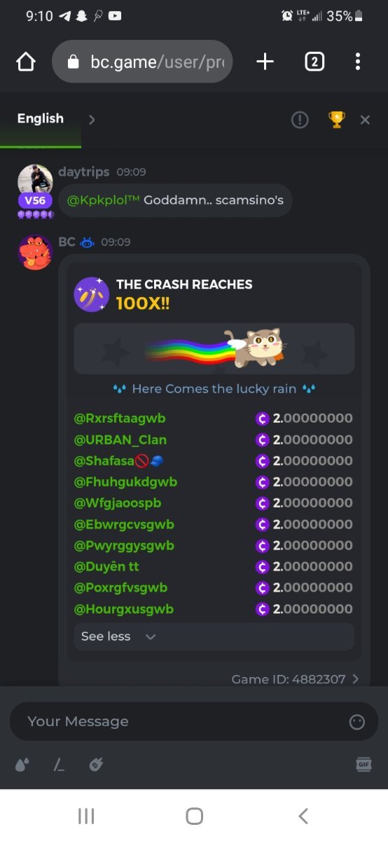 BCGame_POP Posted June 6, 2022 Share Posted June 6, 2022 Heya, there is one rain that any users can catch. Crash rain - when Crash goes above 100x - this is the one, and only one where new accounts under level 4 are also eligible. Basically, all accounts are eligible. Link to comment Share on other sites More sharing options...