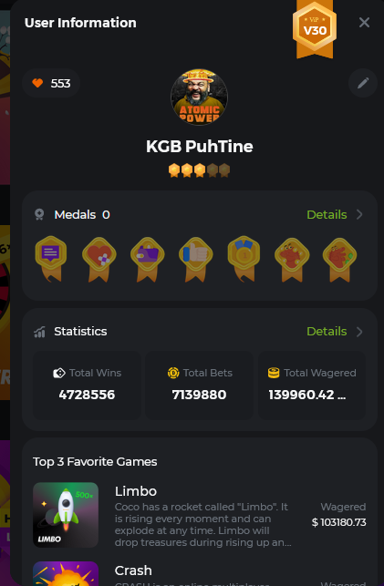 Veertje170 Posted June 13, 2022 Share Posted June 13, 2022 My best moment was the day that I hit an 100K multiplier on limbo, it took some time but finally I got the medal Link to comment Share on other sites More sharing options...